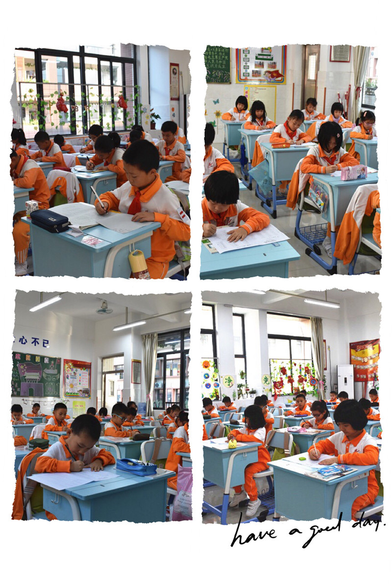 比赛时,当监考老师口令一响,教室里就变得悄然无声,只听到同学们在写字时轻轻的“沙沙”声和监考老师刻意放缓的脚步声。