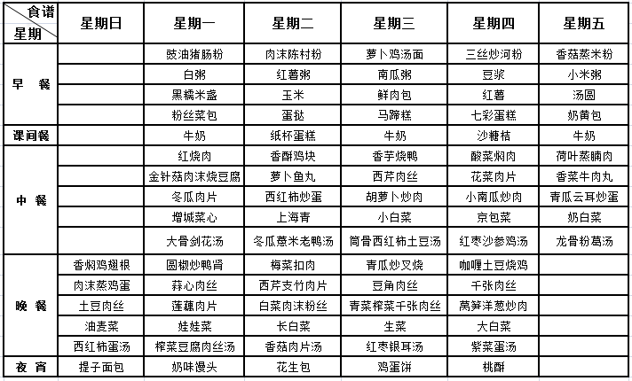 黄广增城学校1月6日-1月11日学生食堂营养菜谱