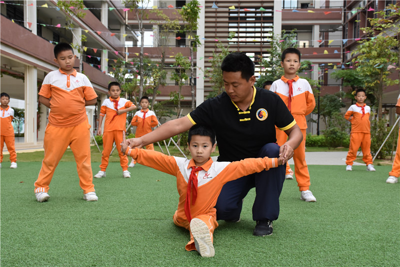 在套路运动中,孩子们的身体协调能力得到训练,动静结合,刚柔并济,舒展大方的动作中,充满着矫健、敏捷、洒脱而遒劲之美,促使孩子们的情操在演练中受到陶冶,提高自身的修养和审美能力。