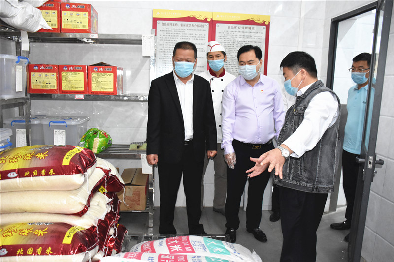 在蒋晓明校长的带领下,骆书记一行实地察看了校园环境、学生宿舍以及校园安全防范设施等,重点参观了师生食堂,详细了解食堂食品留样检测、仓库食材储存管理等,并对我校安全管理工作表示充分肯定,提出了更高的管理要求,同时对学校的整体长远规划提出指导建议。