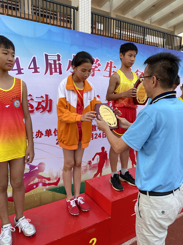 10月24日,石滩镇第44届小学生运动会在石滩中学隆重开幕。本次运动会共有24个学校参加,黄冈中学广州增城学校(简称“黄广增城学校”)派出14名运动员进行7个单项,2两个团体项目的角逐,并获得团体总分第二名的历史最好成绩,同时荣获体育道德风尚奖!
