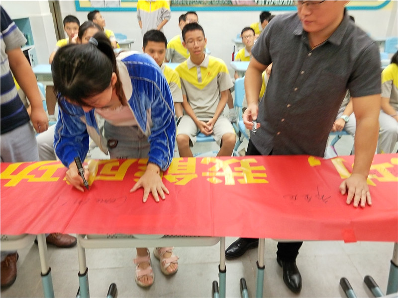 同学们信心满满地签下自的名字。为了自己的理想,全力以赴!