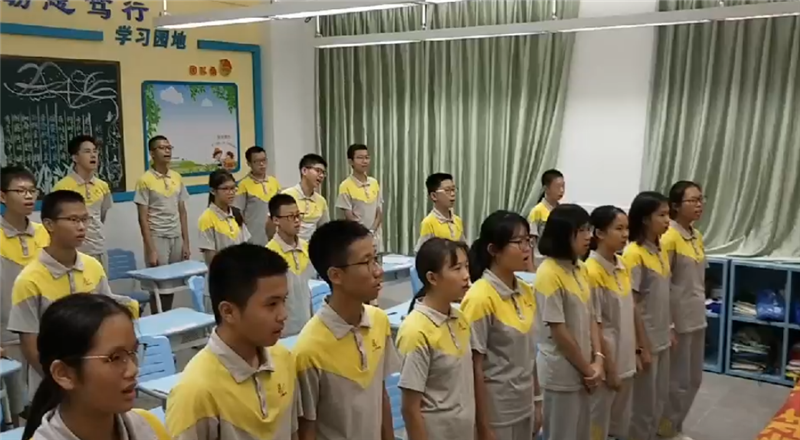 同学们以青春的激情和昂扬的斗志齐唱校歌《怒放的生命》。