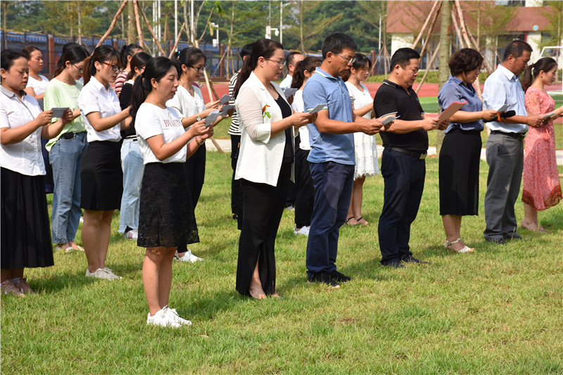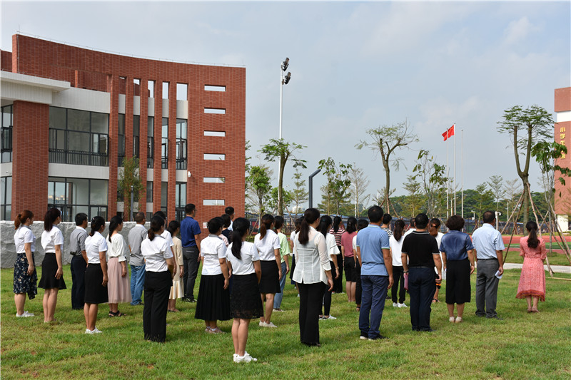 当天上午9:18,仪式正式开始。首先举行庄严的升旗仪式。在激昂的国歌声中,国旗缓缓升起,参加仪式的全体人员内心激昂澎湃,高唱国歌,歌声洋溢着黄广人对祖国的日新月异发展变化充满自豪,对学校辉煌的未来充满了信心。