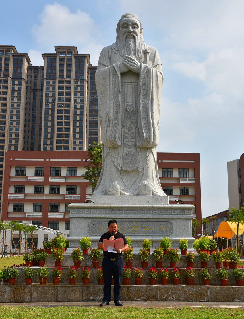 9月10日教师节当天上午,黄冈中学广州增城学校(简称“黄广增城学校”)新校区隆重举行“孔子圣像落成揭幕仪式”活动。学校特邀嘉宾、集团董事、行政班子团队以及部分教职员工代表参加活动。