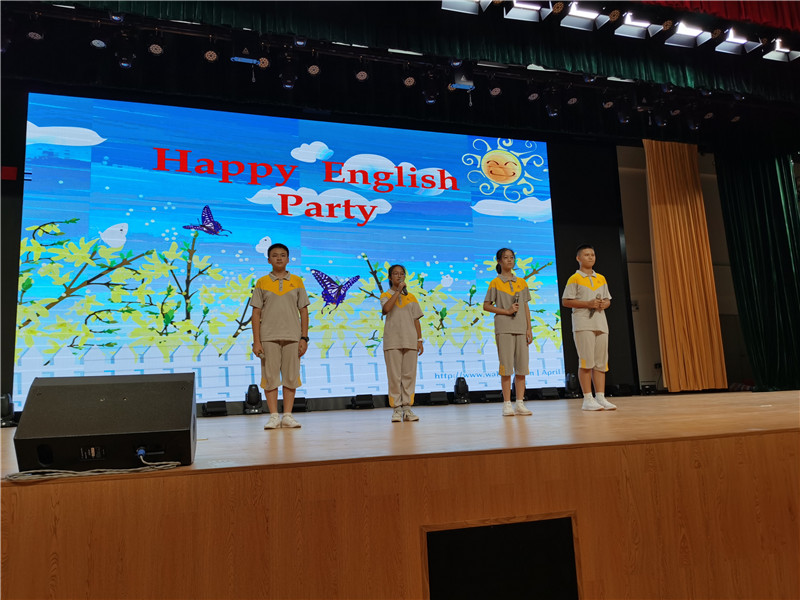 主持人错落有致的提问,一个个悬念的抛出,让学生们沉浸在英语知识的海洋,孩子们流连忘返,乐此不疲。