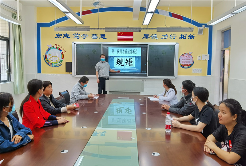 语文、数学、英语、政治、生物、历史等参考科目教师分析了各班的评估成绩与动态发展现状,并结合广州中考,反思学科网课如何致力于实效,提高学生全员积极参与等有关教学行为。