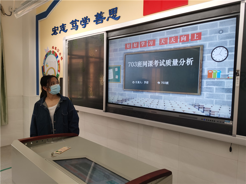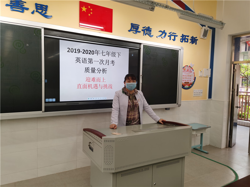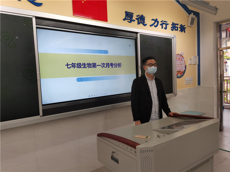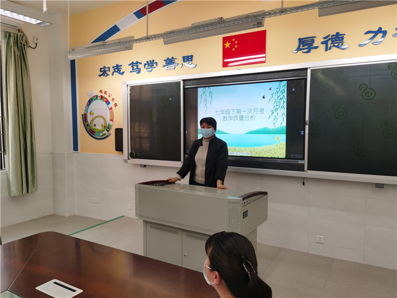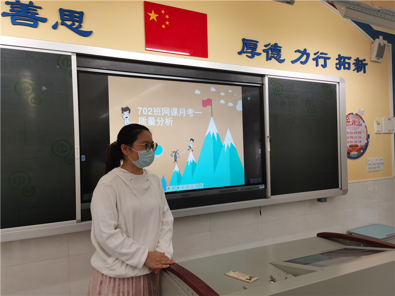 王主任首先充分肯定全体教师网课以来同心同德、顾全大局,严格执行学校教学计划,精心组织网上课堂教学。同时通过智学网数据库从纵横两方面比较、分析了这次教学质量,并与上学期末等前几次质量进行比对,宏观把握学科发展态势,微观分析学科优劣现状,结合巡堂、网课情况反馈,及时汇总商讨优化策略,紧盯规范行为是七年级作为初中起始阶段强化的重点,指出目前网课教学改进的方向。
