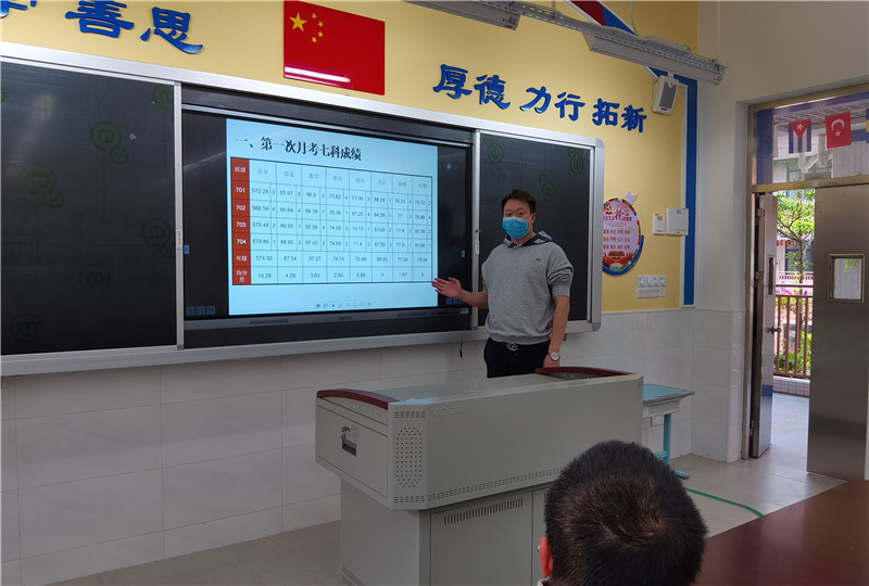 七年级四位班主任分别就本班教学情况进行了详细的分析,通过班内各科数据分析,找出每位学生的优势与不足,确定各班提升对象与方案,定班级下一阶段教学目标。