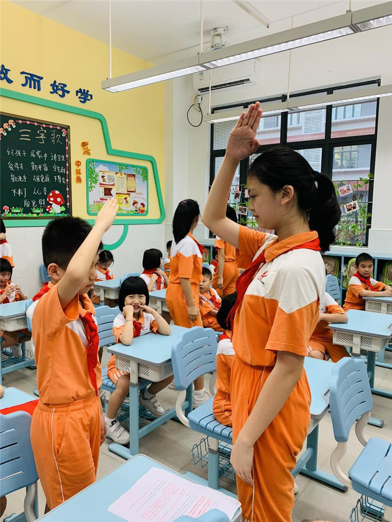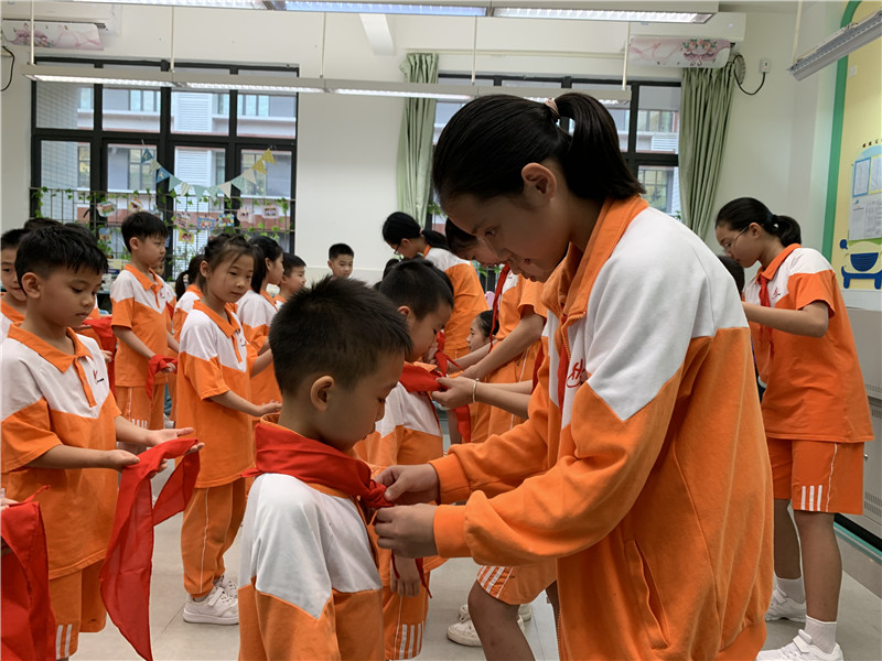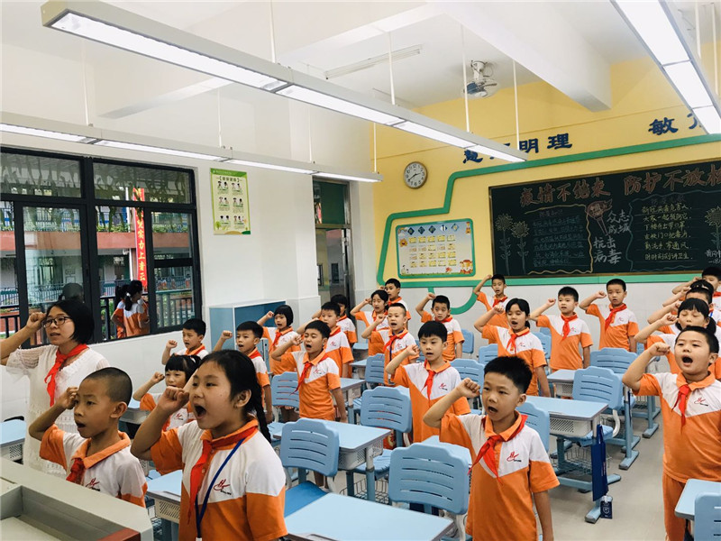 为鼓励新队员“从小学先锋,长大做先锋”,近日,黄冈中学广州增城学校(简称“黄广增城学校”)举行一年级新少先队入队仪式,510名学生光荣加入了中国少年先锋队。