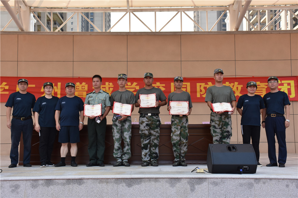 ☆学校领导在结营仪式上为“优秀教官”颁发证书,合影留念。