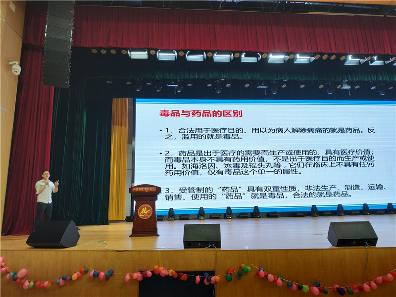 石滩镇派出所刘警官以通俗易懂的话语和生动详实的事例,向同学们详细介绍了“什么是毒品,吸毒对人体健康、家庭、社会的危害,吸毒者为什么不易戒毒,吸毒的原因和如何避免使用毒品”等方面的知识。