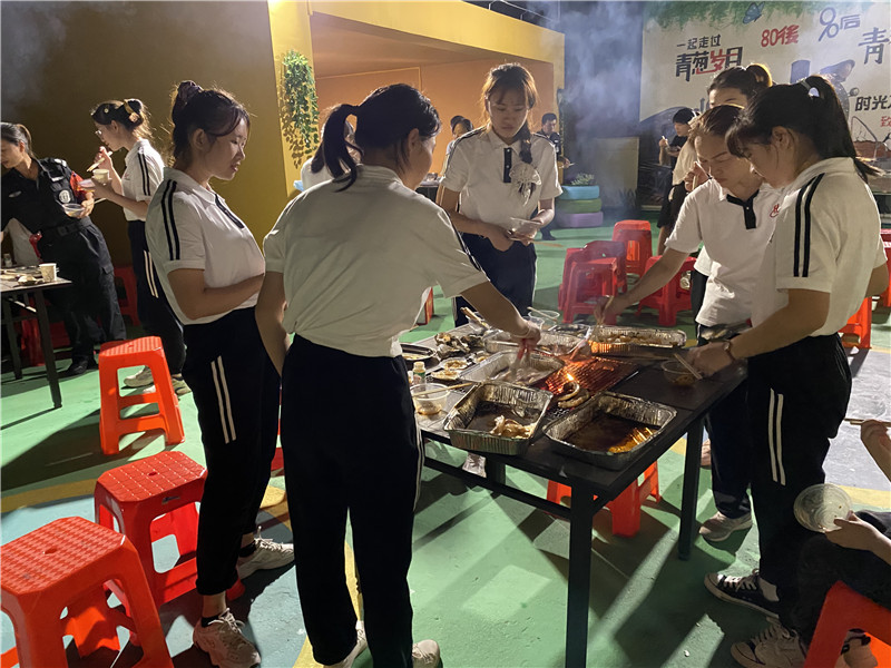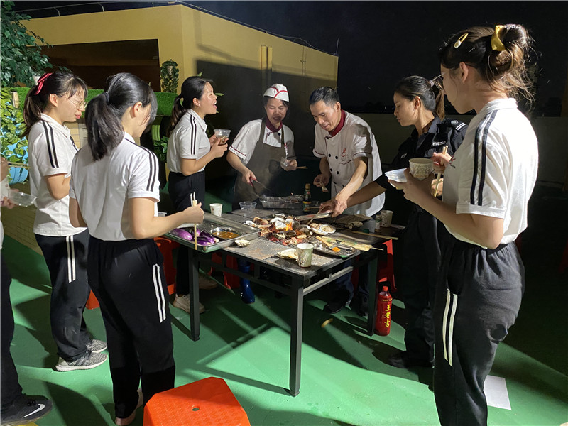 大家围在一起,一边吃着美味的烧烤,一边畅谈工作、生活中的趣事,一边展示大家的才艺,欢笑声阵阵,还不时拿起手中的手机捕捉着快乐的瞬间。