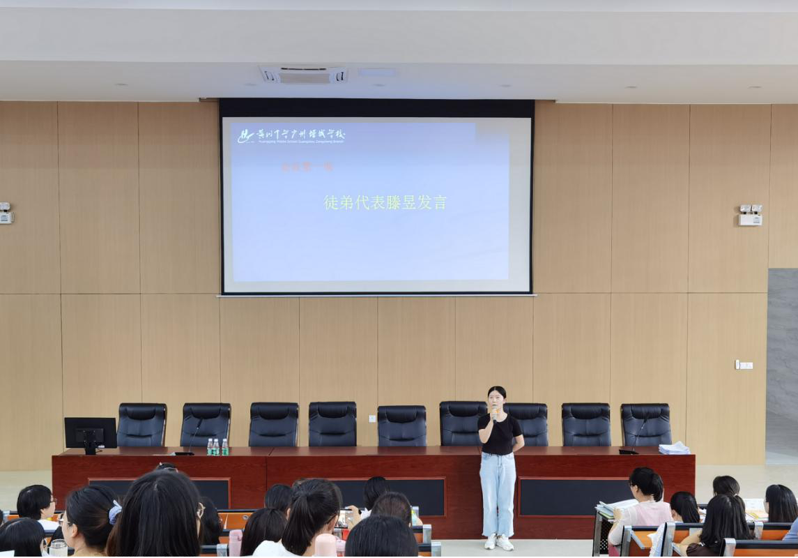 老师的老师是一个身份、一项荣誉,更是一种责任。代表师傅发言的游丽老师深感体会,当师傅们承担这份任务,便是接过了沉甸甸的责任。因此游丽老师对徒弟们送上美好祝愿,也向各位师傅表示敬意。