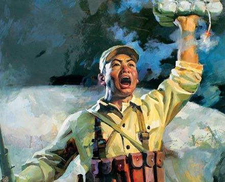 “昂首挺胸钢臂撑,炸包轰响鬼魈崩”的董存瑞