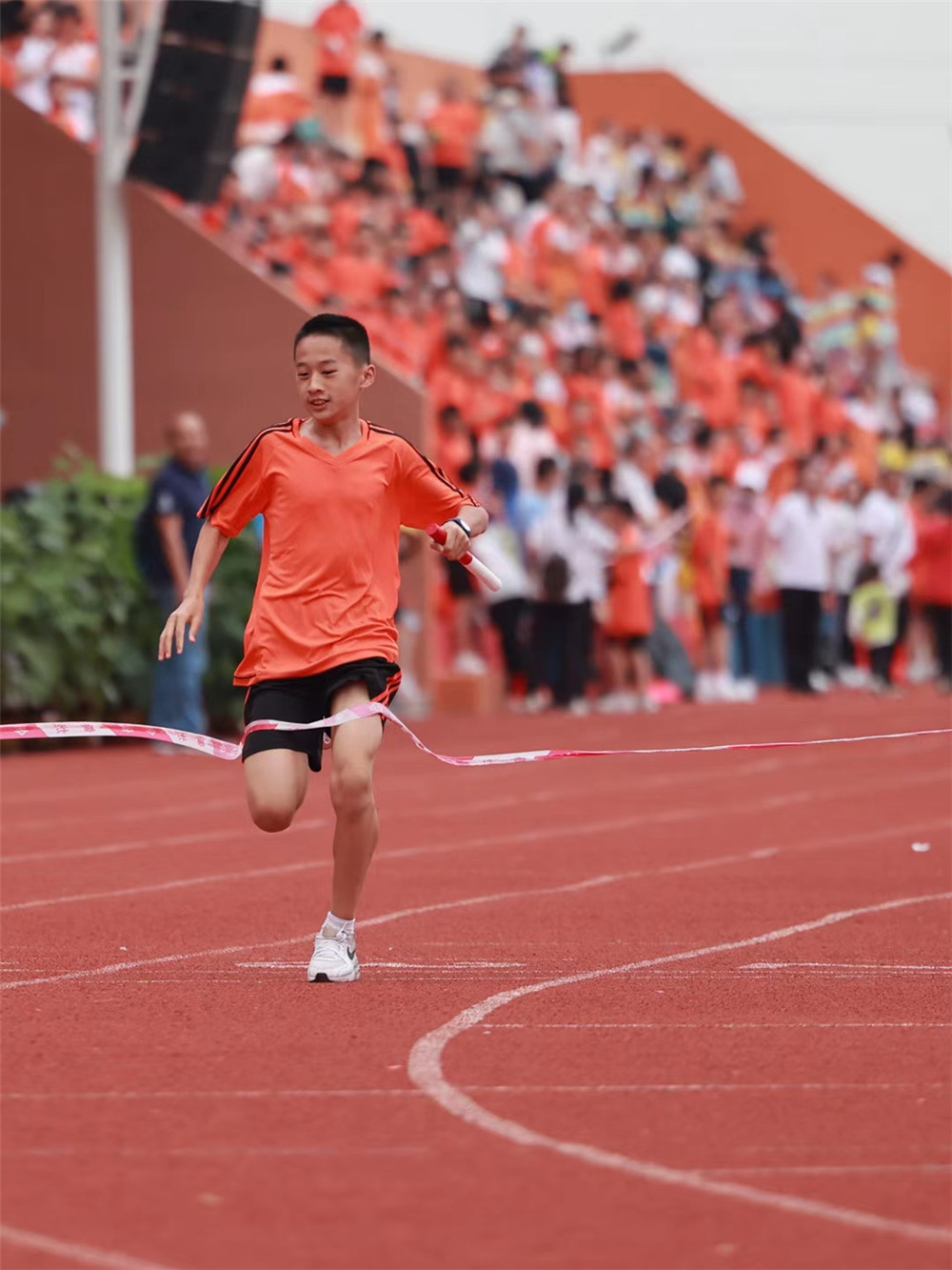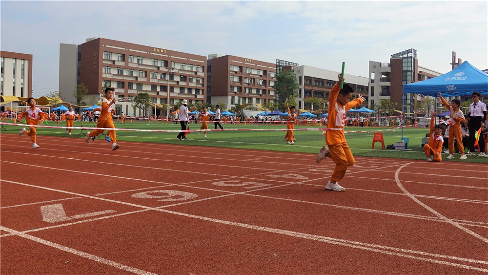 一个个飞离起跑线,似利箭般冲向终点,引得在场同学和老师们的阵阵欢呼。