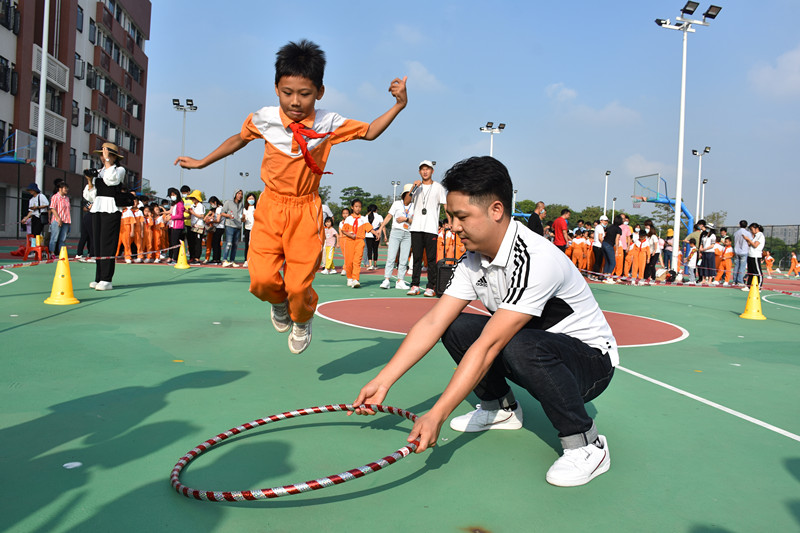 小小广播员清澈的嗓音在运动场四周环绕,给运动员们呐喊加油!