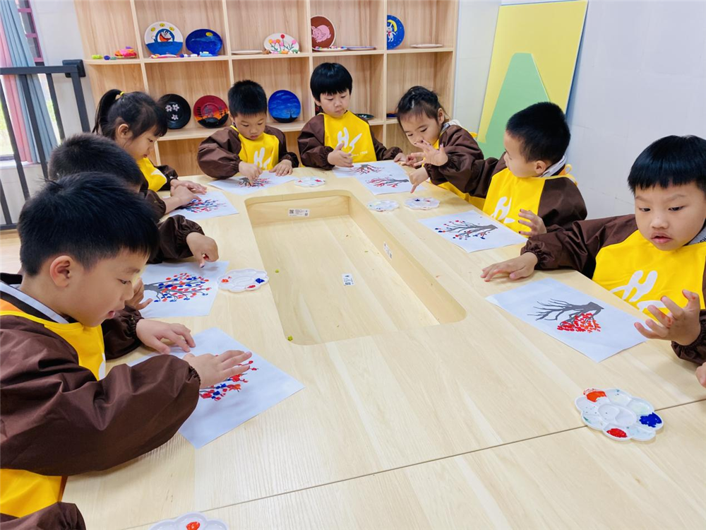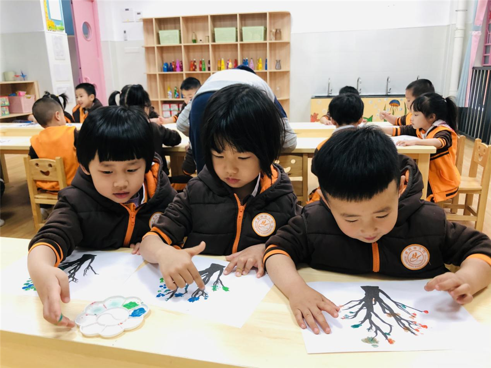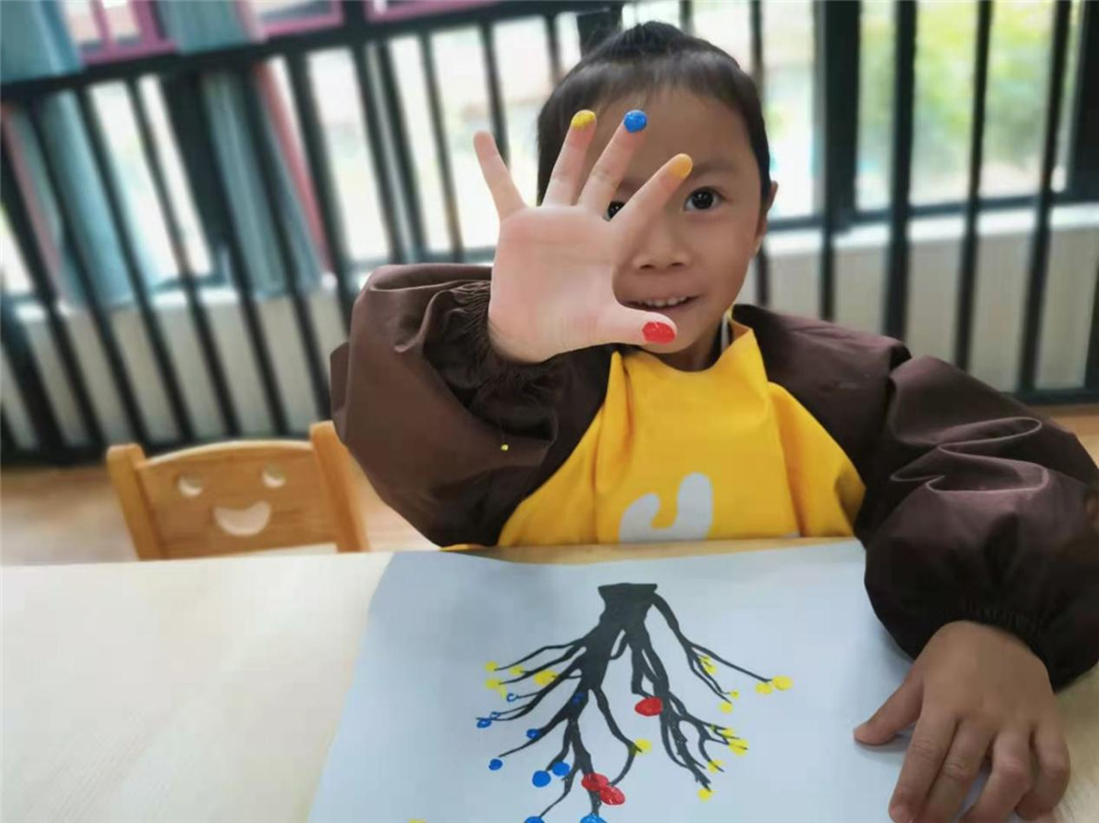 给小手涂上五彩的颜色,就可以装扮他们心中的大树。