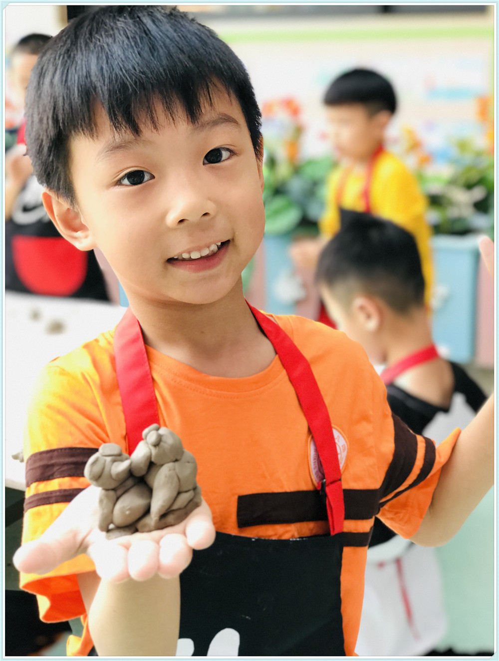 专用做陶艺的“陶土”湿润柔软,更能让孩子们无拘无束地敲打揉搓,一边释放童真,一边激发天马行空的创意。