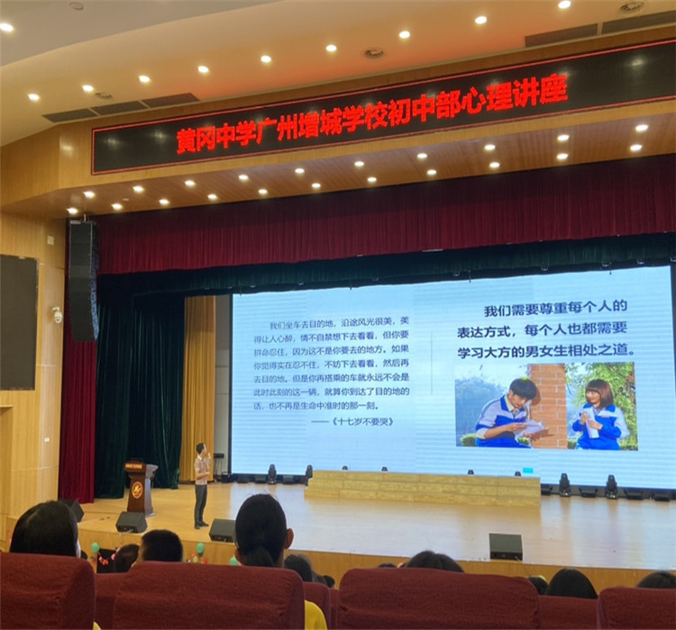 黄冈中学广州增城学校(简称黄广增城学校)为积极培养“高雅情趣者、健康生活者”的复合型精英人才,近日,初中部在礼堂举行了以“致青春”为主题的心理健康教育讲座。