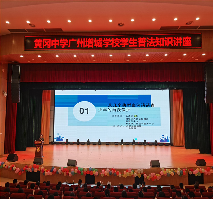 黄冈中学广州增城学校(简称:黄广增城学校)积极开展健康商数、品质力培育。近日,黄广增城学校联合石滩司法所、增城区人民法院刑庭、石滩禁毒办、石滩镇儿童福利服务平台举行了以“携法同行·快乐成长”为主题的普法知识讲座。